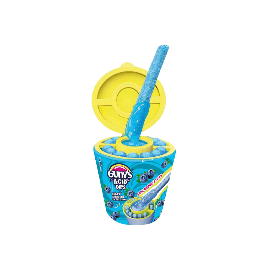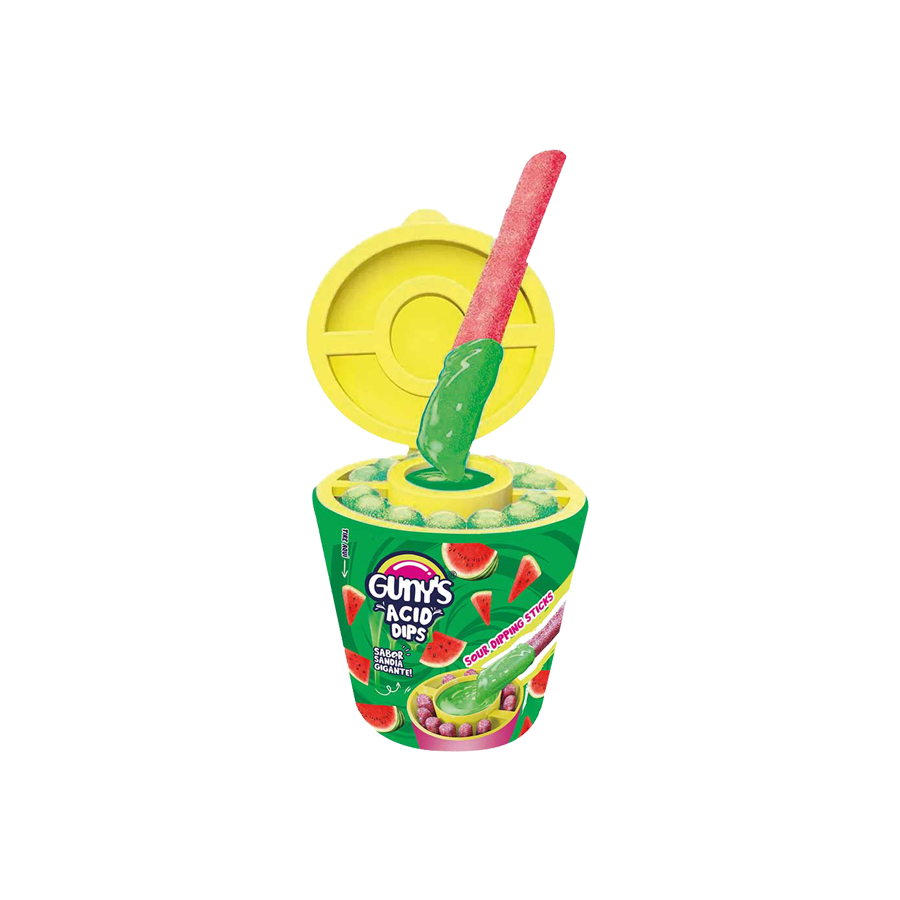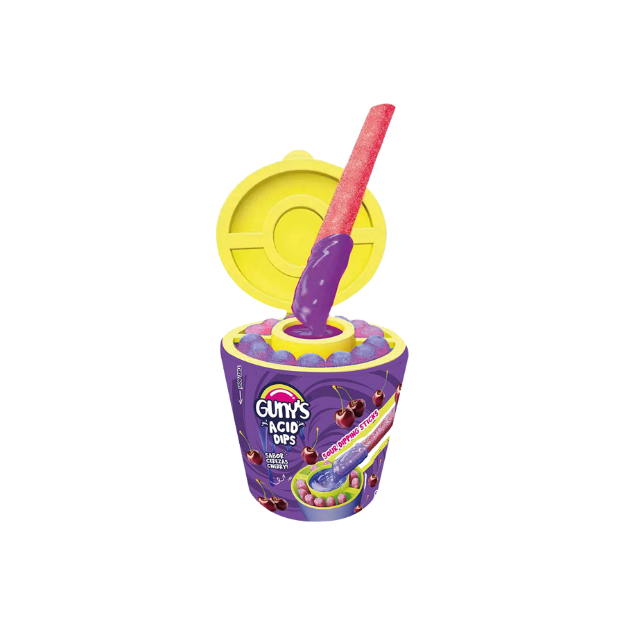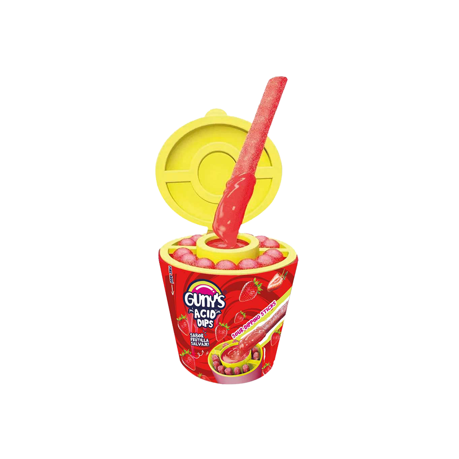 Un snack divertido y explosivo: paleta de goma bañada en un intenso polvo ácido sabor fruta. Viene en diferentes sabores frutales (cereza, frutilla, sandia). Ideal para quienes disfrutan de sabores intensos y agridulces.